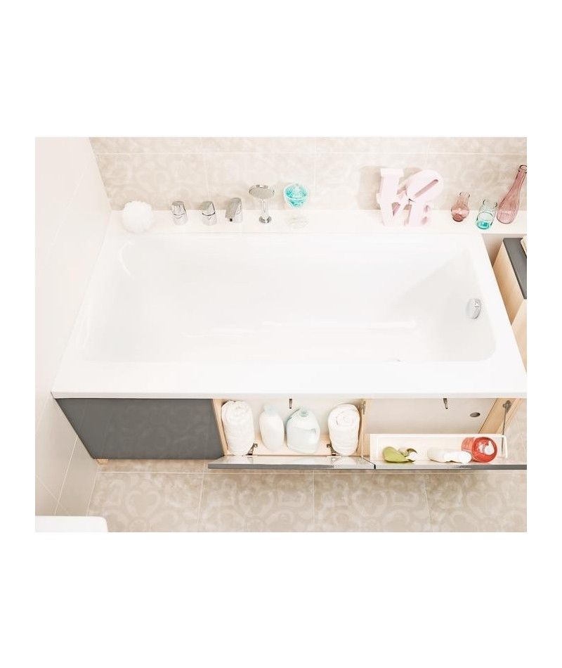 Ванна Smart – це унікальна ванна в пропозиції Cersanit завдяки своїй унікальній ширині полиця, яка дає вам багато можливостей. На ньому можна розмістити аксесуари купальні костюми або келих вина. Широка полиця також створює простір для меблевий щит з відсіками. Продається в комплекті з регульованими ніжками. Можливість придбати меблевий корпус з функціональними відділеннями.