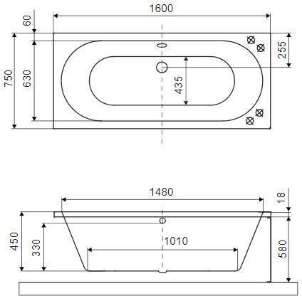 Прямокутна акрилова ванна 160х75 см, білий мат.
