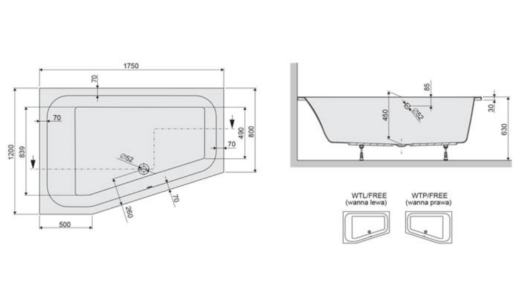 Виготовлені з легких матеріалів, які легко чистяться, ергономічні та регульовані, і водночас красиві та непідвладні часу – такими є сучасні ванни. Вони мають приємні прості лінії і ідеально вписуються в стиль будь-якої ванної кімнати. Для любителів сучасного індустріального оформлення ми пропонуємо трапецієподібні ванни WTL(P)/Free. Це пропозиція для любителів сучасних, рішучих форм. Екстравагантна форма ванни ідеально вписується в сучасні тенденції в дизайні інтер'єру, де неправильні, кутасті форми є інтенсивно використовуваним мотивом. Їх оптимальна глибина 45 сантиметрів і кут нахилу спинки гарантують комфорт, зручність і відпочинок. Трапецієподібна ванна дуже зручна і забезпечує більше простору для купання, ніж класичні форми, тому ідеально підходить для купання двох. Серія Free Line комплектується рамою. Модель WTL(P)/FREE доступна в правій і лівій версіях. Його незвичайна форма пожвавить кімнату, додасть трохи авангарду, зробить її унікальною та приверне увагу кожного, хто заходить до нашої ванної кімнати.