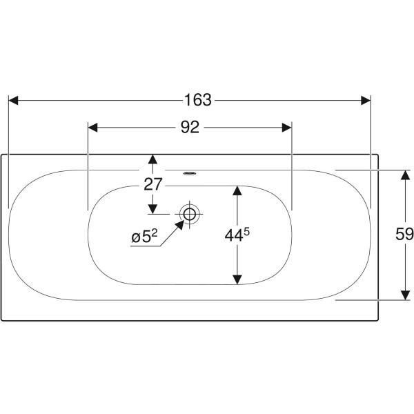 Слив посередині, асиметричний. Зливний отвір ø 52 мм. Можливість свердління отворів для арматури згідно з EN 232