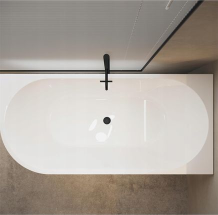 ВАННА BALNEO КУТОВА ОКРОМНО СТОЯЧА, ПРАВА 160x80 см, ЧОРНА ЗАТВОРКА + ПЕРЕЛИВ