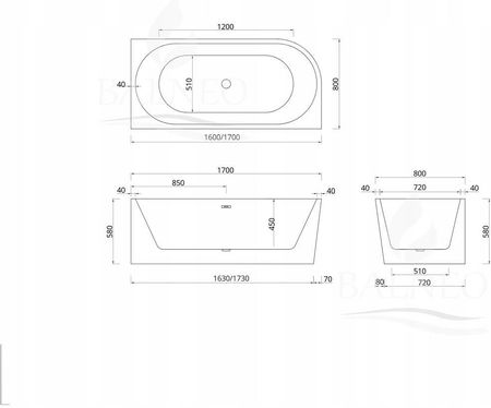 Ванна Balneo Avola 170x80 J01010404022, фото 3