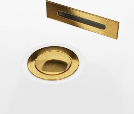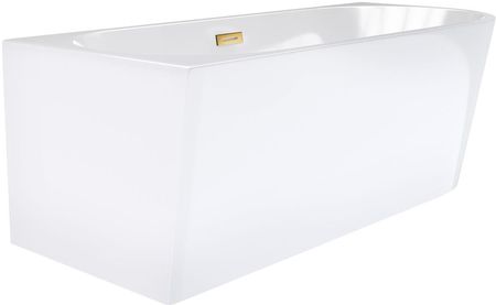 ванна: кутова, колір: білий, монтаж: лівий, край ванни: слім (звужений до краю ванни), оздоблення: матове золото (заглушка та кришка клік-клак), вбудований корпус, матеріал: акрил армований скловолокном і смолою, довжина: 150 см, ширина: 74,5 см, висота: 59 см, місткість: 251 л,