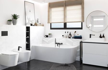 Кутова ванна Corsan INTERO була розроблена з урахуванням сучасності та підходить майже до будь-якого інтер’єру ванної кімнати. Його головна особливість - ідеально продумана форма, що забезпечує зручне положення під час купання. Використання подвійного посиленого дна ванни дозволяє приймати романтичні ванни для двох. Заокруглені лінії роблять ванну сучасною та елегантною. Чудовий дизайн зробить ваше щоденне купання неймовірним задоволенням. При проектуванні ванни подбали про найдрібніші деталі. Для виробництва використовувалися тільки найякісніші компоненти, в тому числі надзвичайно стійкий акрил. Перевага акрилового покриття в тому, що воно гасить шум при ударах. Сучасний технологічний процес гарантує, що ванна буде теплою на дотик. Повітря між акриловими шарами забезпечує теплоізоляцію, завдяки чому ванна довше зберігає воду теплою. Кутова ванна Corsan INTERO додатково армована скловолокном, що гарантує її довговічність. Золота обробка є надзвичайно довговічною, що надає всьому унікального дизайну. Форма ванни дозволяє легко встановити додаткову шторку для ванни. Ця унікальна в усіх відношеннях ванна оснащена зливом з опцією «клік-клак» і рамою, яка забезпечує точне вирівнювання. Окремо стоячу ванну Corsan можна легко встановити самостійно, до кожного продукту додається інструкція. Ванна доступна в трьох варіантах: ліва або права версія і довжина: 150, 160 або 170 см.