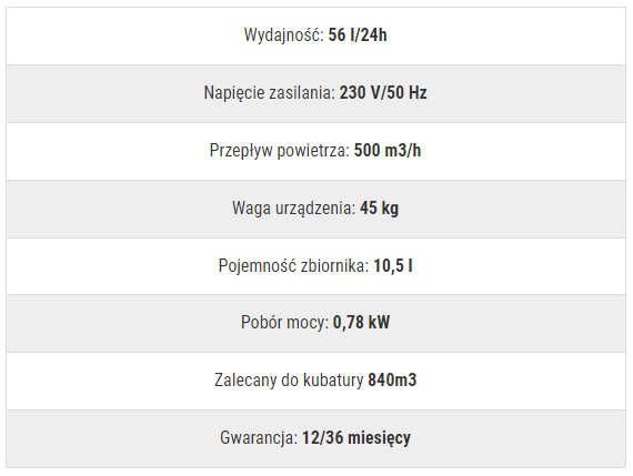 Промисловий осушувач повітря Master DHP 65 призначений для професійного використання. Його конструкція робить його ідеальним навіть у важких умовах роботи, напр. Надлишок вологи істотно подовжує терміни виконання деяких робіт або взагалі робить їх неможливими. Характерною особливістю осушувача повітря Master DHP 20 є можливість мити під струменем води - просто зніміть корпус. Пристрій також можна складати в стек.