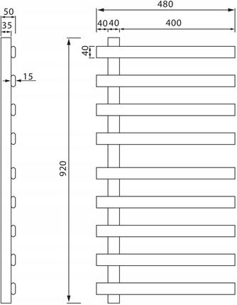 Технічні дані: електросушарка, потужність: 128 Вт, робоча напруга: 220 В - 240 В, варіанти нагріву: вбудований електропідігрів, максимальний нагрів поверхні сушарки від 45 до 55 ° C в залежності від температури навколишнього середовища, матеріал: нержавіюча сталь, загальні розміри: 48x92x5 см, колір: чорний матовий, форма труби: літера Е, комплектація: підсвічування вимикач, кабель живлення спіральний після протяжки, довжина 120 см, ГАРАНТІЯ: 2 роки.