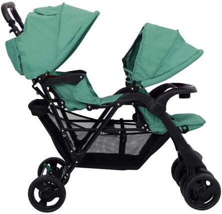 Двомісна коляска ідеально підходить для того, щоб брати дітей із собою на прогулянку чи за покупками. Подвійна коляска виготовлена ​​зі сталі та льону, що робить її міцною та зручною. Регульований балдахін використовується для захисту дітей від УФ-променів. Внизу коляски також є кошик для іграшок, їжі, ковдр тощо. Крім того, її можна легко скласти до компактних розмірів, щоб заощадити місце для зберігання та транспортування.
