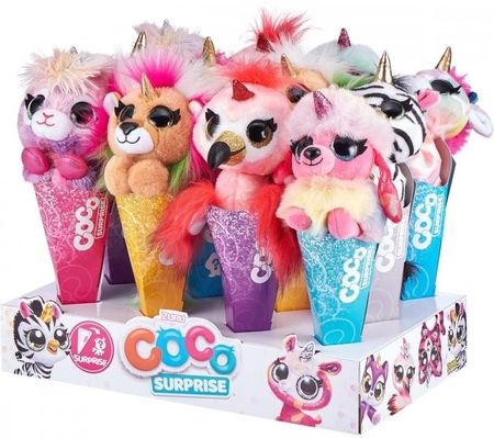 Чарівні та м’які плюшеві тварини для усиновлення та любові. Прийміть свого чарівного вихованця Coco Surprise у конусі! Ці 12 чарівних милашок сидять у конусі й чекають, поки ви заберете їх додому. Створіть свою ідеальну колекцію домашніх улюбленців із 12 персонажів на вибір, включаючи ламу Чарлі, єдинорога Фіфі, мавпу Кай і навіть динозавра Діно. Витягніть їх із конуса та знайдіть малюка-сюрпризу, захованого всередині! Можна зібрати 13 малюків Коко, включаючи рідкісного золотого єдинорога.