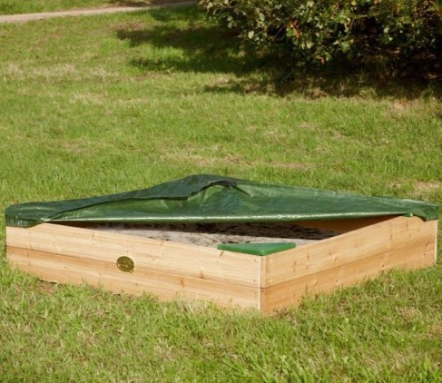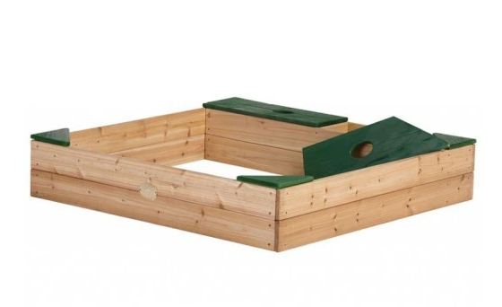 На кожному розі є зручні сидіння. У комплект входить брезент служить укриттям і спеціальним субстратом для боротьби з бур'янами. В пісочниці Вміщається до 350 кг піску! Усе це легко зібрати.