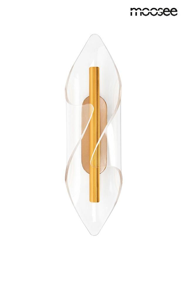 Надзвичайно ефектний настінний світильник із блискучої золотистої сталі та алюмінію з декоративним абажуром із морозного акрилу, який чудово розсіює світло.