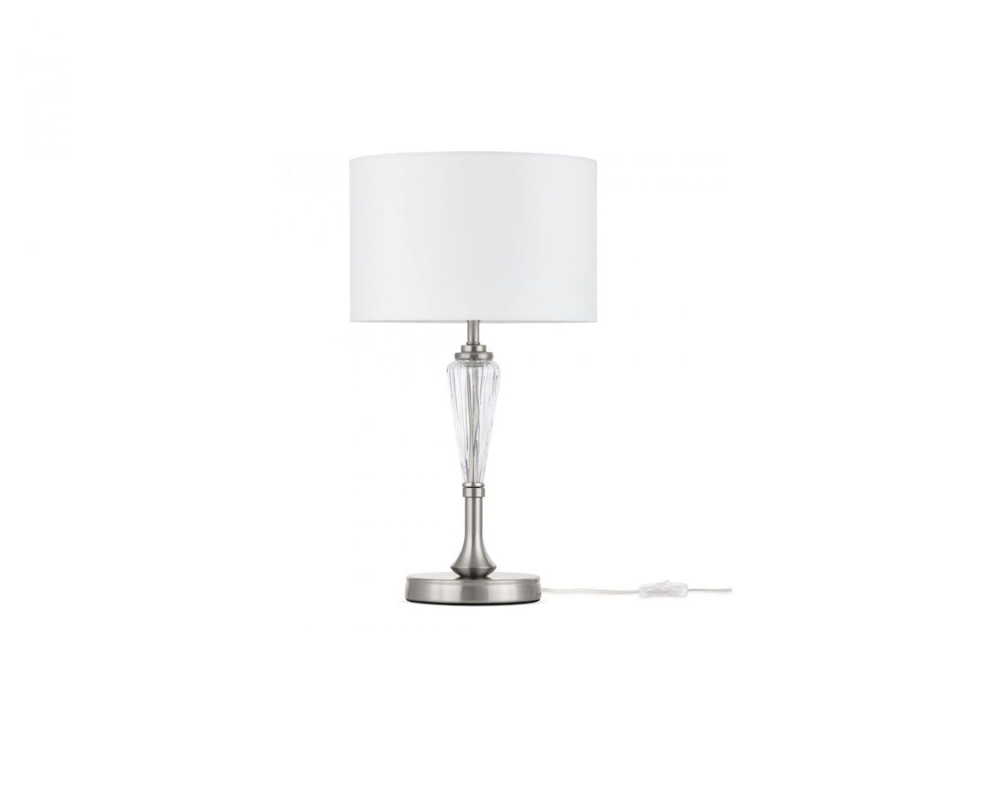 Специфікація: Кількість джерел світла: 1 x E14 Ступінь захисту: IP20 Джерело живлення: 230 В Потужність одного джерела світла: 40 Вт Джерело світла в комплекті: Немає рухомого джерела світла: Немає регулювання висоти: Ні Висота: 46 см Ширина: 26,5 см Колір: Білий, Хром, Прозорий Матеріал: Метал, скло, тканина Стиль: класичний, сучасний Місце використання: офіс, вітальня, спальня