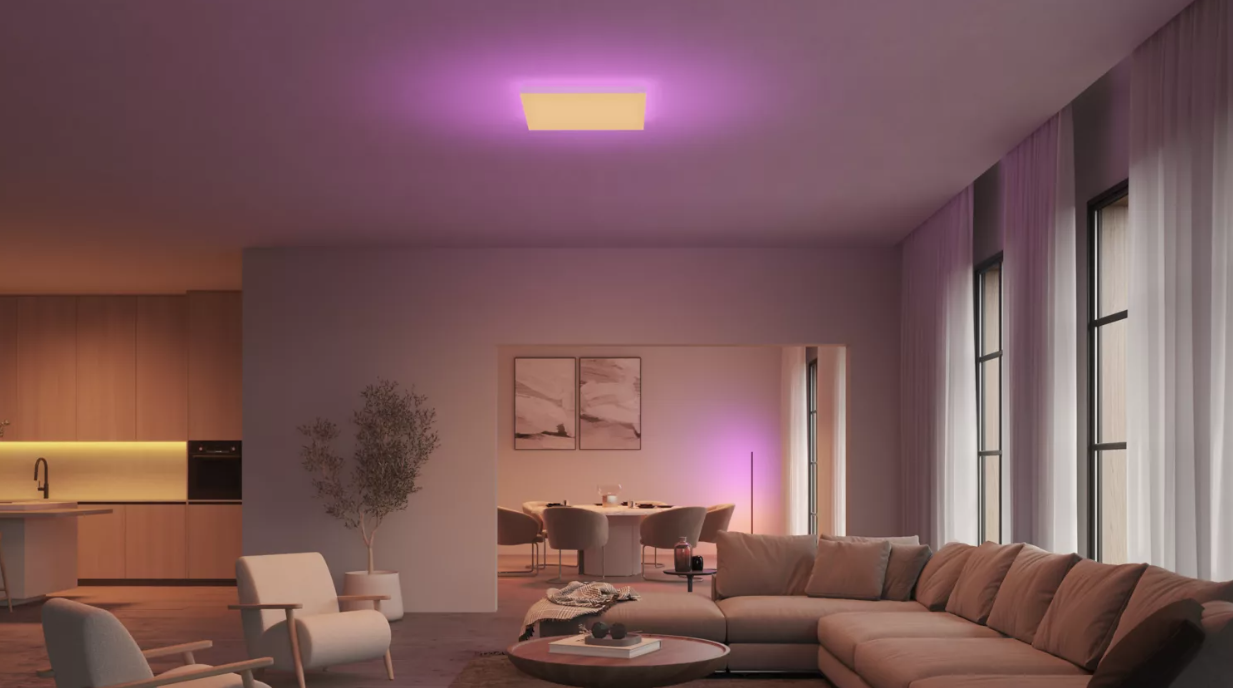 Змініть свій дім за допомогою палітри з 16 мільйонів світлих кольорів – легко й швидко створіть атмосферу, яка підходить для будь-якого випадку. Одним дотиком ви можете створити святкову атмосферу, ідеальну для домашньої вечірки, перетворити свою вітальню на кінотеатр, змінити вигляд свого дому за допомогою різних кольорів світла та багато іншого.