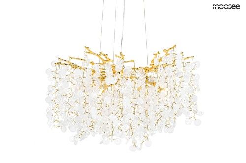 Підвісний світильник MOOSEE RIVIERA 60 золото Ексклюзивний і незвичайний світильник, який прикрасить Ваш інтер'єр. Набір акрилових абажурів, виготовлених з максимальною точністю, закріплений на сталевому ободі золотистого кольору, що імітує гілки дерев. Серед плафонів заховано цілих 8 джерел світла, які красиво освітлять простір і створять дивовижний візуальний ефект. Ще одна цікава функція – можливість регулювати кут світла. Riviera - це лампа з багатьма перевагами, яка ідеально підійде в салоні краси або ресторані. Світло: 8 x G9 макс. 20 Вт Кріплення: висота 152 см / ширина 60 см / глибина 60 см Плафон: висота 47 см / ширина 60 см / гл 60 см Кріплення: висота 4 см / діам. 15 см Кабель: 115 см Монтаж: стельовий Вага нетто: 11 кг Розміри упаковки: 31 см / 31 см / 38 см.