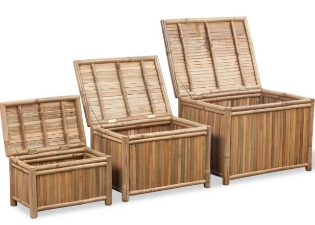 Цей бамбуковий набір ящиків є ідеальним рішенням для зберігання додаткових ковдр, побутової техніки та інших речей. Компактний, сільський дизайн впишеться в будь-яке приміщення. Натуральний колір бамбука додасть вашому інтер'єру трохи тропічного характеру. vidaXL 3 бамбукові скрині - скрині виготовлені з високоякісного бамбука, який характеризується чудовою атмосферостійкістю та довговічністю. Їх легко чистити вологою ганчіркою.