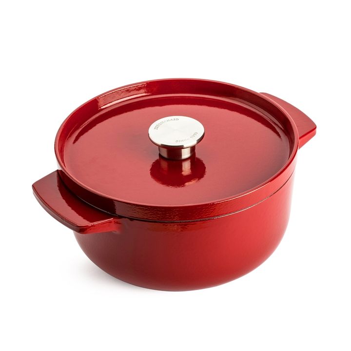 Високий комфорт використання та точність приготування обумовлені такими особливостями каструль з колекції KitchenAid Cast Iron: висока теплова інерція чавуну гарантує тривале збереження температури та рівномірний розподіл тепла, стійкість до високих температур (до 260ºC). ) дозволяє використовувати каструлю в духовці, можна використовувати на всіх джерелах тепла, включаючи індукційні плити, емальований шар зсередини та зовні полегшує очищення каструлі та позбавляє від необхідності приправи, як і у випадку з традиційним чавунним посудом, зручні ручки забезпечують надійний хват і полегшують перенесення.