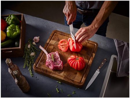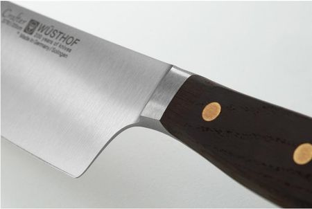 Широке лезо цього кухонного ножа ідеально підходить для нарізання, подрібнення та подрібнення будь-якої їжі. Ніж є частиною унікальної лінійки ножів Crafter. Її надихають традиційні художники та ремісники. Він створений для сучасного шеф-кухаря з пристрастю до майстерності. Ножі Crafter поєднують класичний дизайн, міцні матеріали, приємне відчуття та безпечне поводження. Рукоятки виготовлені з масиву копченого дуба, що робить їх водостійкими, надаючи ножам унікальний характер. Ручки позначені логотипом Wüsthof і кріпляться трьома латунними заклепками. Захист для рук на кінці рукоятки сформований так, що ніж завжди надійно тримається. Головка захищає пальці, а баланс забезпечує спритність і полегшує точну роботу. Тонка форма ножа зменшує вагу леза та забезпечує більшу енергоефективність. Ця міцна сталь легко протистоїть плямам і корозії, гарантує тривалий термін служби і забезпечує точне різання. Масивне лезо і металевий сердечник рукояті, як продовження леза, надають ножу надійну стійкість і, як противагу лезу, забезпечують відмінний баланс ножа. Довготривала надзвичайна різкість завдяки технології PEtec - WÜSTHOF Precision Edge. Основні переваги: