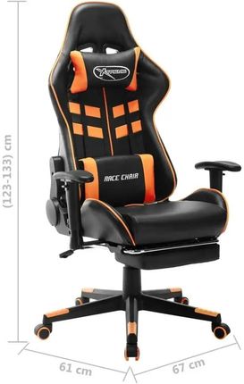 Колір: чорний і помаранчевийМатеріал: метал, штучна шкіраРозміри: 67 x 61 x 123-133 см (Ш x Г x В) Розміри сидіння: 37 x 51 см (Ш x Г) Висота сидіння над землею: 44 - 54 см. Висота підлокітника над сидінням: 17 - 23 см смЗі знімною підставкою для ніг Потрібна збірка: такМаксимальне навантаження: 110 кг