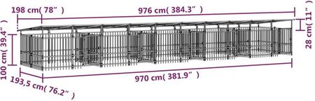 Вуличний манеж для собак, з дахом, сталь, 18,77 м²
