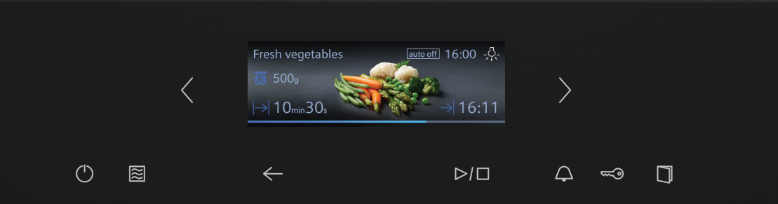 Щоб максимально спростити приготування їжі, компанія Siemens додала в систему кулінарну книгу. cookControl10 містить до 10 автоматичних програм для ідеального приготування страв. Просто виберіть потрібну програму та введіть вагу страви, а про все інше подбає автоматика.