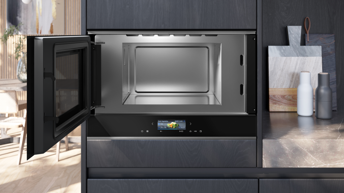 Швидке прибирання у зручний для вас час. Завдяки humidClean Plus очищення мікрохвильової печі ніколи не було таким простим. Просто додайте краплю засобу для миття посуду та додайте ложку в чашку води. Встановіть програму очищення, а мікрохвильова піч зробить все інше. Після завершення програми ви можете легко видалити розм’якшений бруд тканиною або м’якою щіткою.