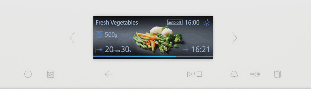 Вам потрібно багато часу, щоб постійно стежити за їжею, яка готується в духовці? Піч тепер пропонує попередньо встановлені автоматичні програми для ідеальних результатів випікання та підсмажування. Ви просто обираєте страву з меню, і датчики духовки контролюють весь процес випікання. Ви навіть можете вибрати бажаний ефект випікання з доступних варіантів. Духовка автоматично застосує відповідні налаштування та вимкнеться, коли страва буде готова. Так ви зможете розслабитися і насолоджуватися вільним часом під час приготування їжі. Незабаром, підключивши піч до свого зареєстрованого облікового запису Home Connect, ви зможете завантажити ще більше програм.