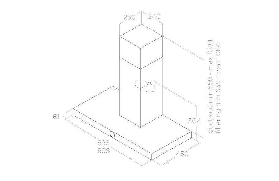 Модель керується поворотним електронним перемикачем, який регулює 4-швидкісний діапазон. Пристрій може працювати в режимі абсорбера, який фільтрує повітря та очищає його від кухонних запахів, а після підключення до вентиляційного каналу також у витяжному режимі, який виводить пари за межі будівлі. У комплект входить алюмінієвий фільтр, який захистить кухонну техніку та шафи від накопичення жирних часток.