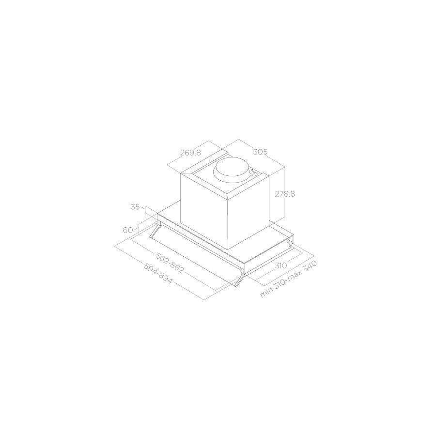 ТЕХНІЧНІ ХАРАКТЕРИСТИКИ: Версія: Extraction 60Матеріал: Нержавіюча сталь Рівень шуму: 50 – 64 дБ(A) Ефективність: 305 – 730 м3/год. Загальне споживання: 257 Вт Освітлення: LED 1x7 WІнтенсивність 421 LUX Температура 300 – 3500 – 4000 K