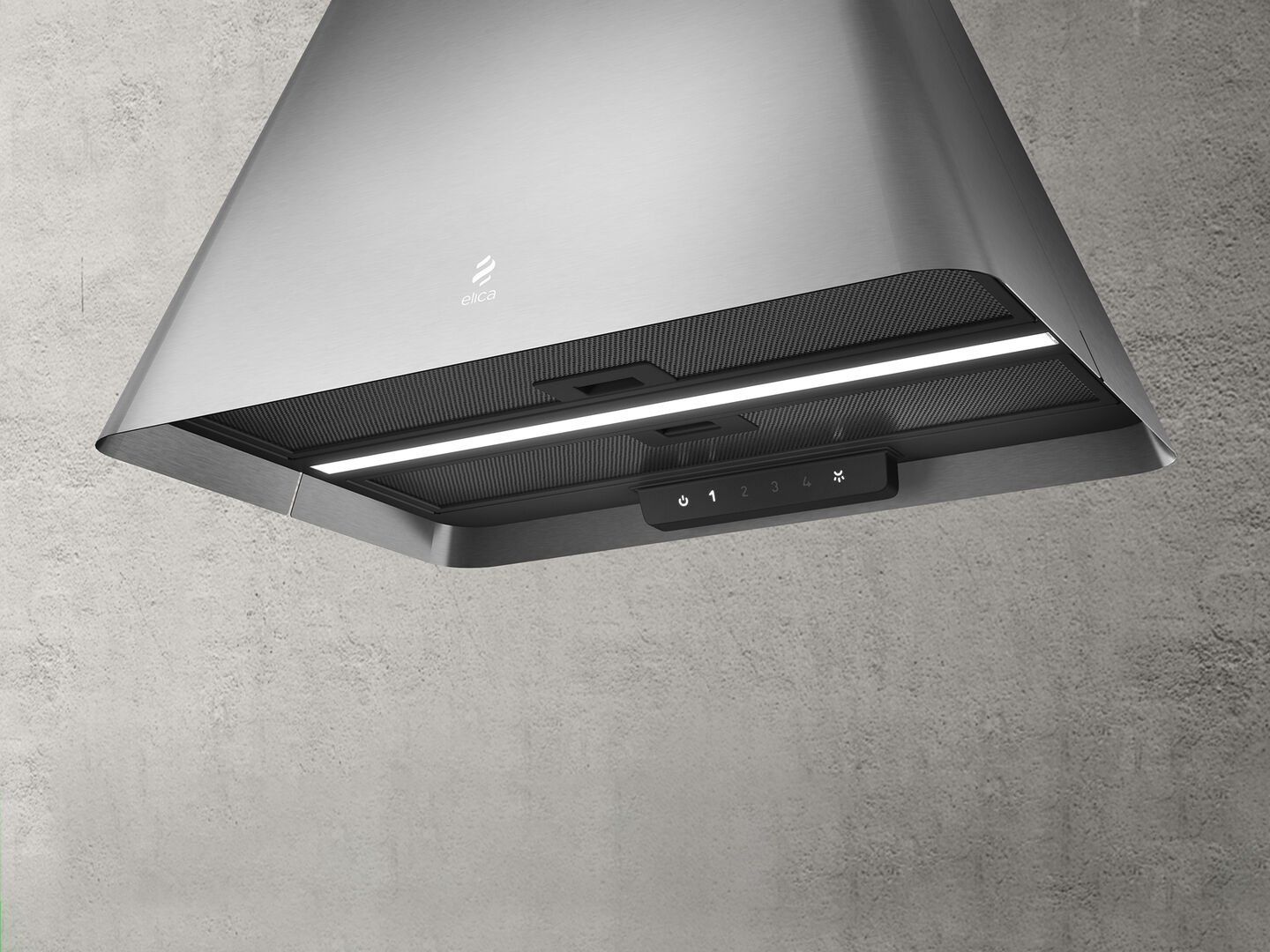 Кожною функцією можна керувати інтуїтивно зрозумілим і простим способом завдяки сенсорному управлінню, розташованому в передній частині капота, яке ідеально підходить до зовнішнього вигляду та забезпечує максимально ергономічне використання. Антижировий фільтр з нержавіючої сталі та алюмінію багаторазовий і захищає від відкладення жирного нальоту на стінах, меблях і вентиляційних каналах. Оснащений вугільним фільтром, що дозволяє працювати в режимі абсорбера.