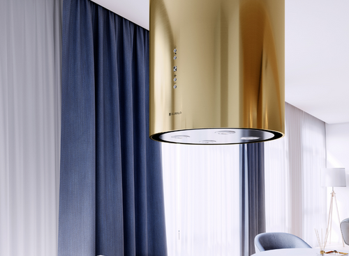 Дана витяжка призначена для установки над кухонним островом. Витяжка Asterio Isola 39.1 Light Gold виготовляється з нержавіючої сталі (Inox), пофарбованої в золотий колір.