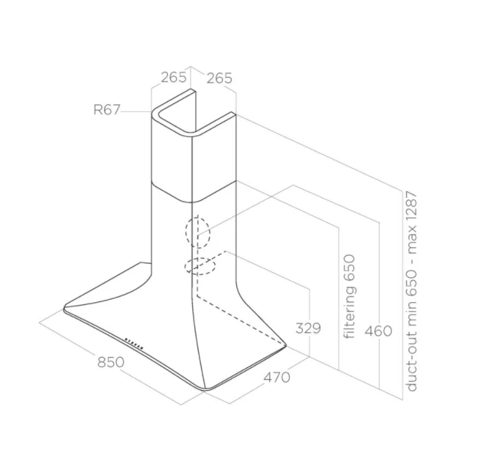 Капюшон виготовлено з водонепроникного матеріалу, який легко миється. Увага! Якщо у вас висока кухня і витяжка повинна максимально виконувати свою функцію, варто повісити її на рекомендованій виробником відстані над плитою. Саму витяжку можна розширити додатковим димоходом, що збільшить висоту витяжки на 650 мм.