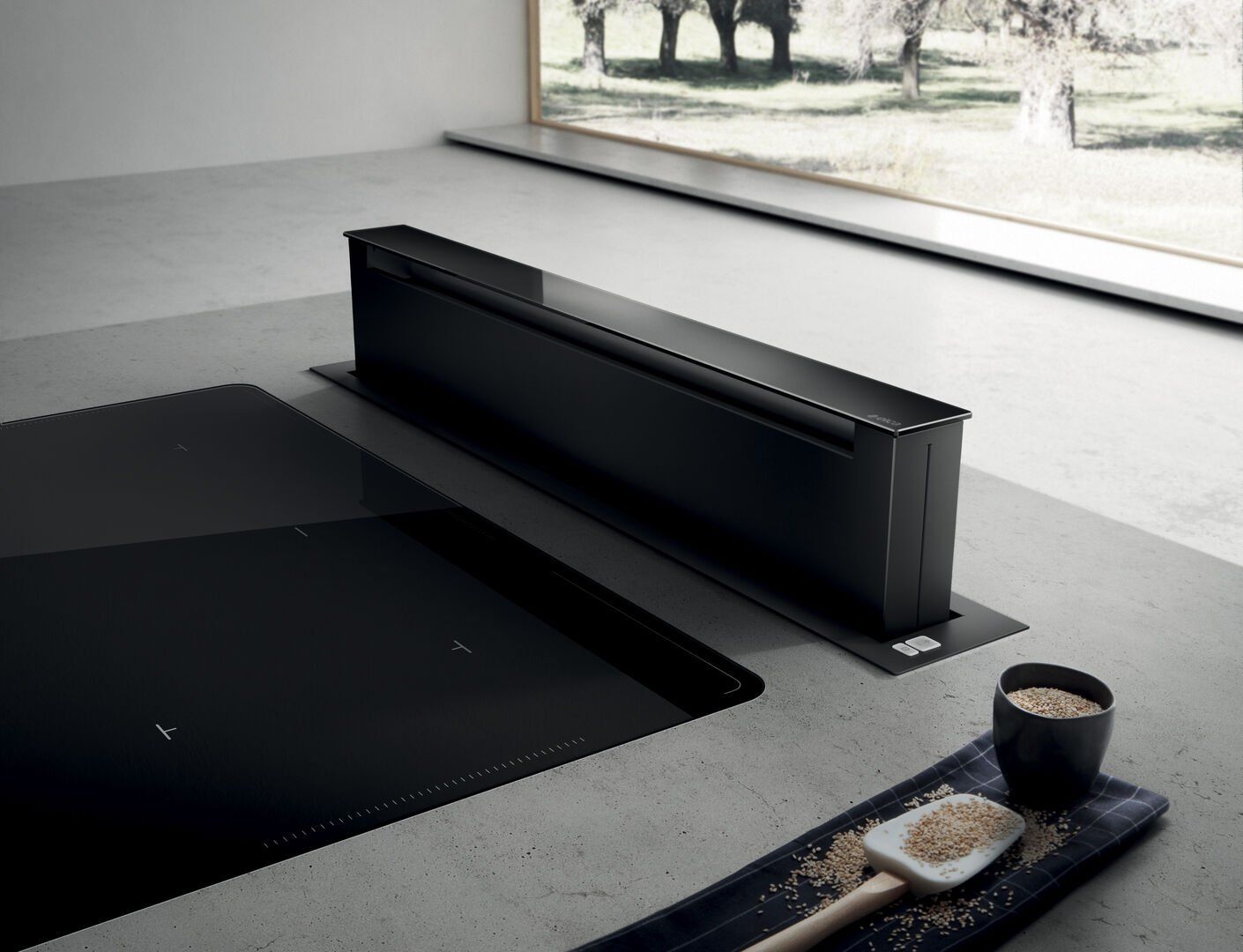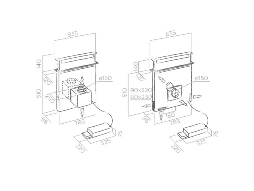 Він виготовлений із високоякісної чорної сталі в поєднанні з чорним склом, що надає йому унікального та елегантного вигляду. Додатково він оснащений внутрішнім двигуном і вугільним фільтром. Тому він ідеально підходить для приміщень, де встановлений рекуператор і немає можливості виводити дим за межі будівлі. Обладнання характеризується надзвичайною потужністю всмоктування, необхідним для великих кухонь або для людей, чиї кулінарні звички вимагають інтенсивного приготування, смаження або смаження. Вбудована периферійна система всмоктування, яка була досягнута шляхом покриття алюмінієвого фільтра, підвищує ефективність витяжки за рахунок більшого тиску всмоктування на площині фільтра, одночасно заглушаючи двигун.