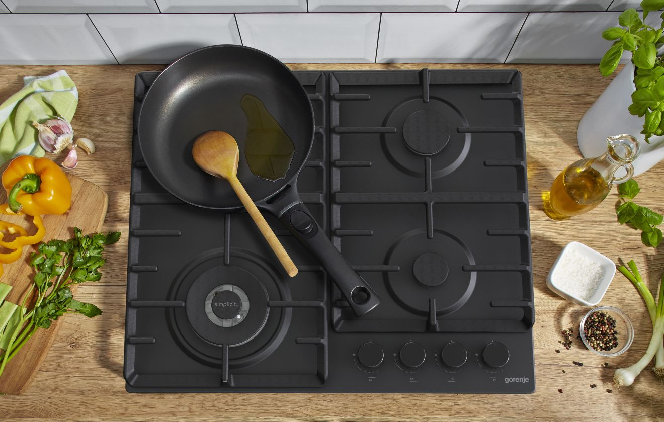 Розпалювання конфорки однією рукою забезпечує додатковий комфорт і легкість керування газовою плитою. Щоб увімкнути газовий пальник, просто натисніть ручку та поверніть її на потрібний рівень, залишаючи іншу руку вільною. Швидко, просто та ефективно.