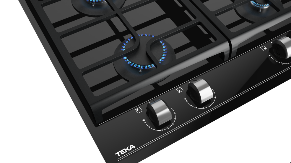Газова варильна поверхня 60 см із колекції Urban Colors (колір Night River Black) Регулювання полум’я ExactFlame (9 рівнів) Фронтальне шліфування Міцне керамічне скло 4 конфорки: 1 подвійна конфорка 4,00 кВт