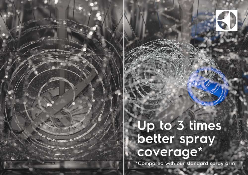 Завдяки інтелектуальній функції SatelliteClean® посуд залишає посудомийну машину без жодних слідів — ця посудомийна машина працює майже в 3 рази краще, ніж її стандартний аналог. Завдяки подвійному обертанню ручки, яка постійно змінює кут розбризкування води, навіть найбільший посуд буде ретельно вимито, мінімізуючи споживання води.