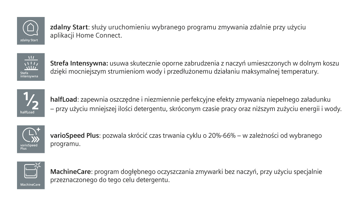 Використовувані технологіїVarioFlex, VarioSpeed Plus, InfoLight, Aqua Stop, GlasProtec, Szuflada vario3 Pro, Rackmatic, Home Connect