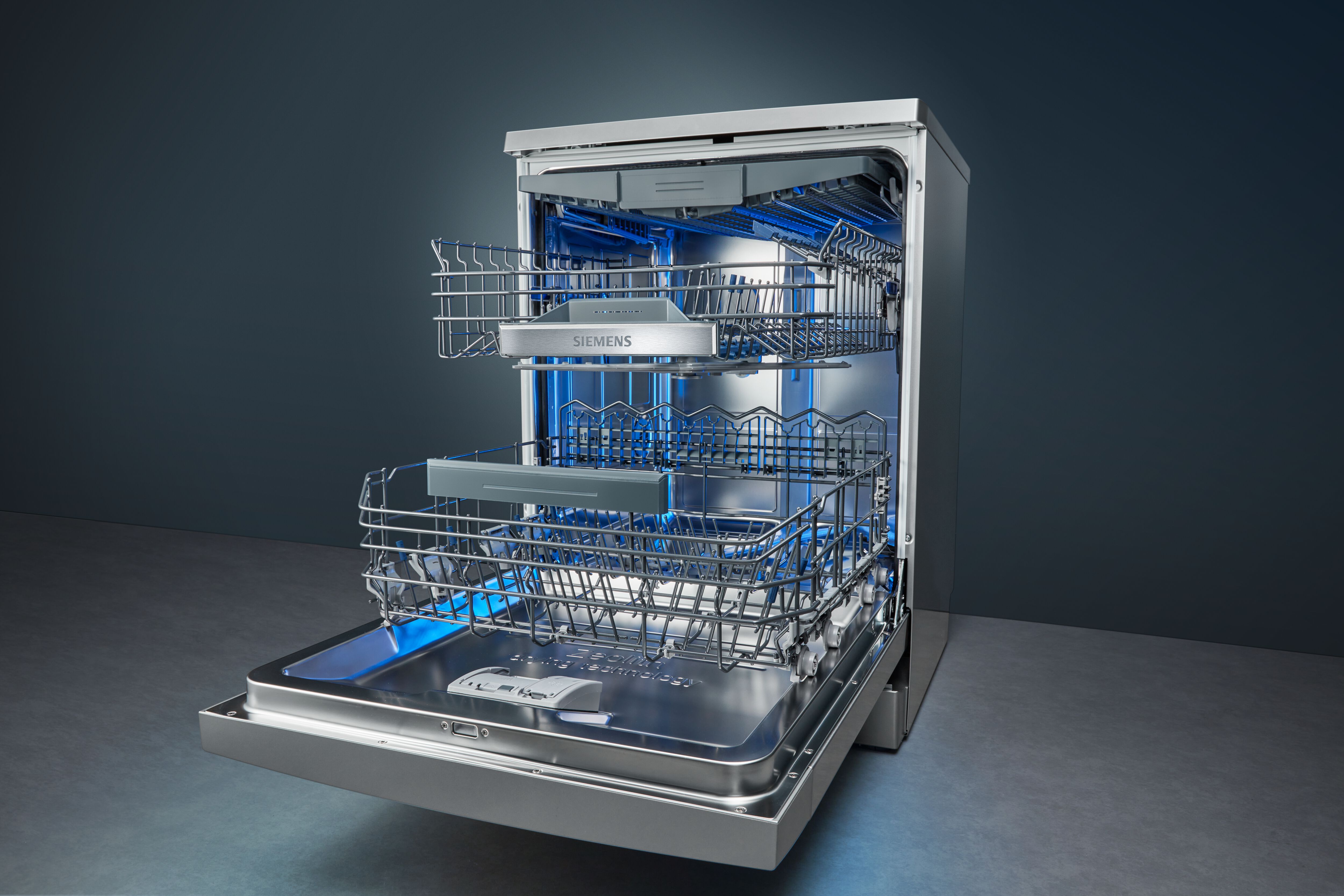 Сильно забруднені каструлі та сковорідки тепер можна безпечно мити за один цикл разом із делікатним скляним посудом. У посудомийних машинах Siemens можна використовувати функцію Intensive Zone, яка збільшує тиск води в нижньому кошику на 20%. Активація функції не впливає на роботу програми верхнього кошика, де делікатний посуд миється дуже ретельно.