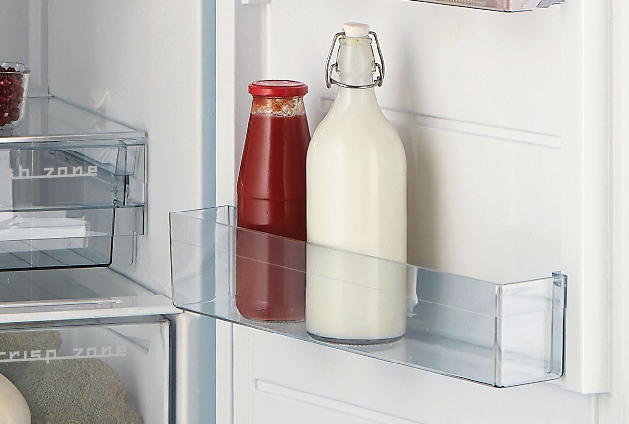 У дверцятах холодильника достатньо місця навіть для найбільших скляних або пластикових пляшок. Спеціальні ручки утримують предмети на місці, щоб запобігти їх переміщенню та можливому пошкодженню під час відкривання чи закривання дверей.