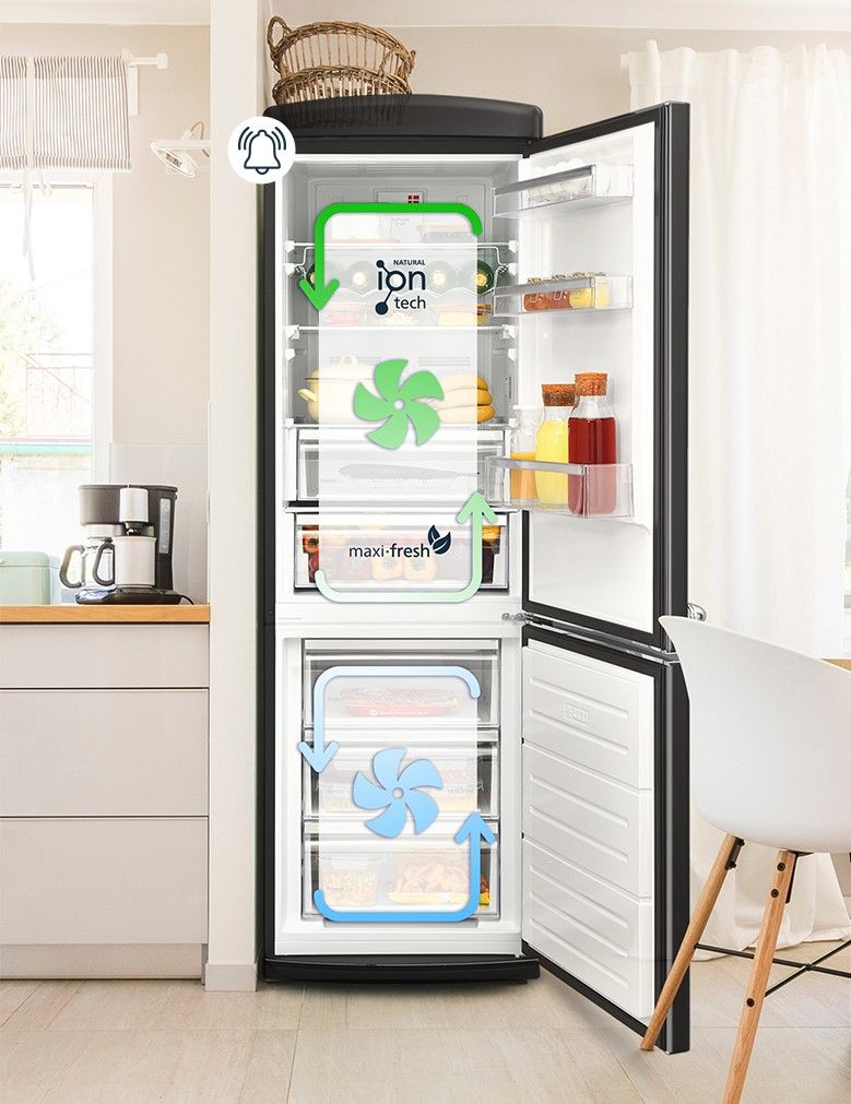 Ретро-лінія характеризується стильним дизайном, закругленими кутами та елегантною обробкою внутрішньої частини холодильника, яку ми поєднали з новітніми технічними рішеннями.