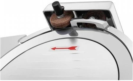 Великий круглий ніж діаметром 250 мм ідеально підходить як для холодного м'яса, так і для сирів. Ви можете досягти ще більш ефективного нарізання молочних продуктів, вибравши тефлонове лезо номер 10010271. Інтегрована напівавтоматична точилка, яка постійно заточує обидві сторони ріжучого диска, гарантує, що робота з моделлю RCAM-250E завжди буде швидкою. Простота експлуатації пристрою є результатом ряду рішень, використаних у його конструкції, наприклад, рифлена поверхня ріжучої платформи, яка запобігає ковзанню продукту під час обробки. Крім того, він встановлений під кутом, що дозволяє легше притискати м'ясо до леза, не перевантажуючи м'язи рук і спини. У свою чергу пластикові ручки дозволяють легко переміщати напрямну.