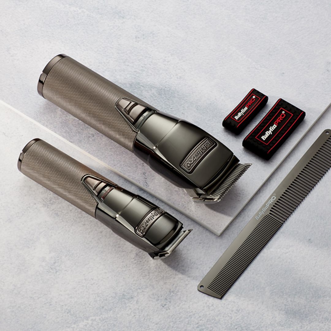 НАБІР BABYLISSPRO®4ARTISTS GUNSTEELFX FX8705E — ЦЕ НАДІЙНИЙ ДУЕТ, ЩО СКЛАДАЄТЬСЯ ІЗ МАШИНКИ ТА ТРИММЕРА, ЩО В ПОЄДНАНІ ІЗ ПЕРЕДОВІМИ ТЕХНОЛОГІЯМИ ЗАБЕЗПЕЧУЄ ВИСОКУ ЕФЕКТИВНІСТЬ.