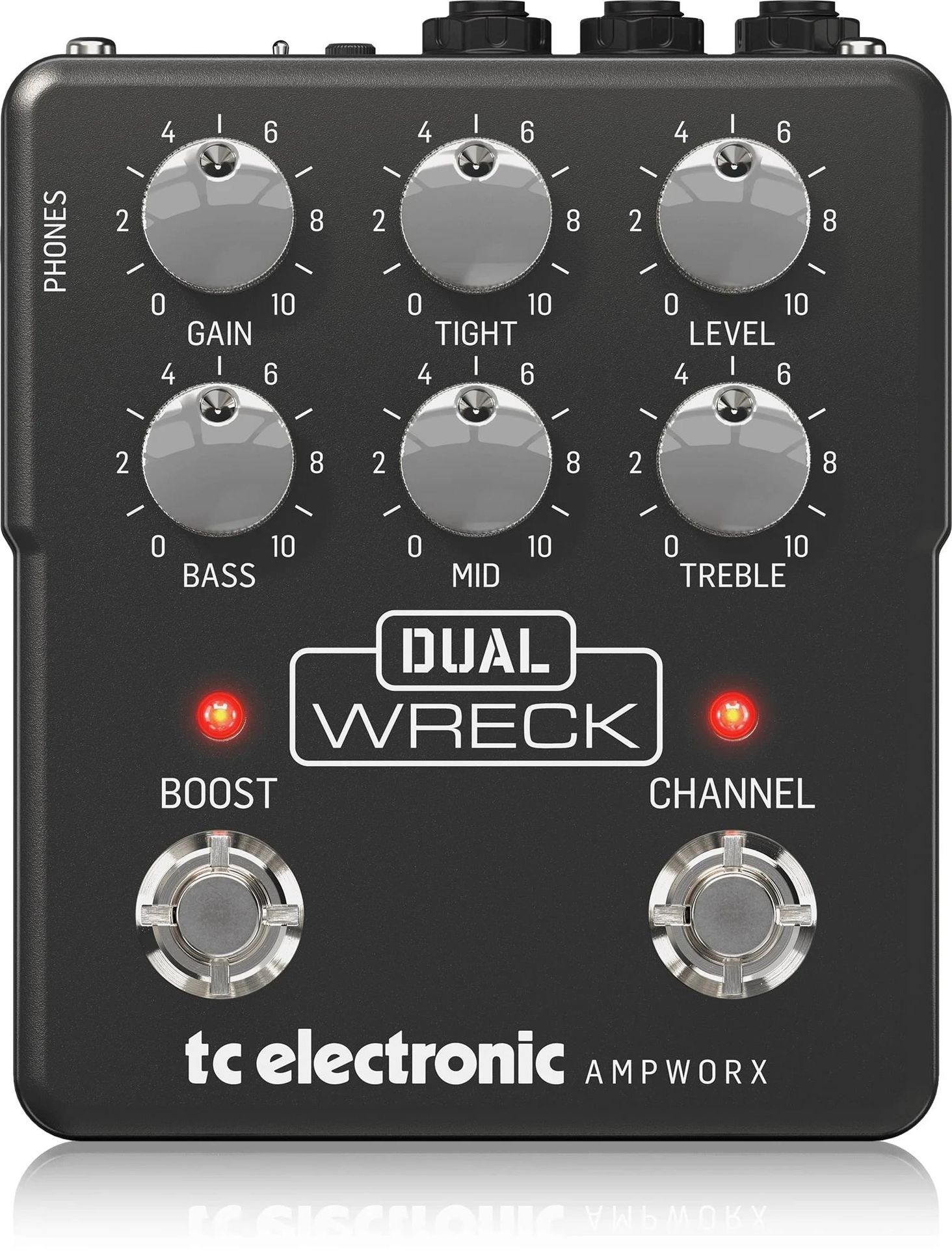 TC Electronic DUAL WRECK PREAMP - гітарний попередній підсилювач з симуляцією кабінету IRD. Двоканальний гітарний попередній підсилювач, що міститься в компактному корпусі для гітарних ефектів, точно відтворює звук лампового підсилювача Dual Rectifier, з встановленим офіційним ІЧ-профілем Celestion і незалежним каналом. контроль, підвищення в попередніх/режимах пост і виділені DI виходи і навушники.. Основні характеристики: Гітарний попередній підсилювач у формі підлогового ефекту, який точно відтворює звук і динаміку легендарного лампового підсилювача Dual Rectifier Revision G 1995 року. Два канали з незалежними регуляторами насиченості, гучності та корекції, що забезпечують широкий спектр звуку. звуки: від кристально чистих до потужних металевих спотворень (CLEAN) дозволяє посилити драйв до блюзу червоний канал (LEAD) забезпечує величезну кількість спотворен