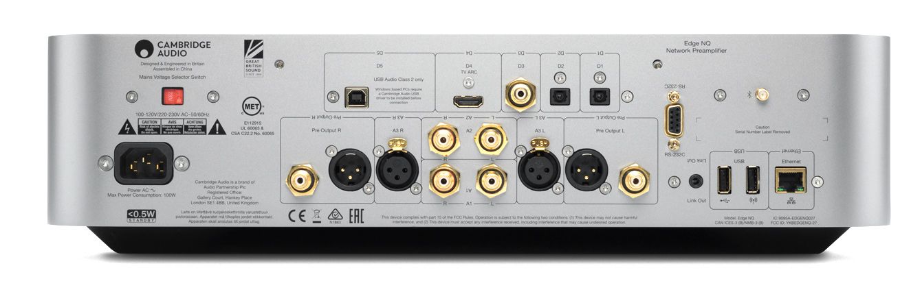 Попередній підсилювач оснащений повним набором з’єднань, включаючи: S/PDIF, HDMI ARC (Audio Return Channel), USB, тож користувач може бути впевнений, що він відтворюватиме будь-який тип сигналу, від цифрового PCM до 32 біти та 384 кГц, закінчуючи DSD256. Edge NQ подарує неймовірний реалізм, кольори, ритм і контрольовані баси.